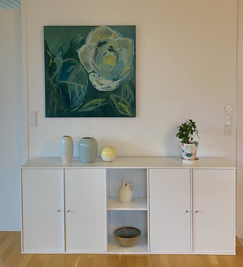 Din mobil kan bruges til et godt hack. Du finder det maleri frem her på hjemmesiden, som du vil se, holder skærmen op mod din egen væg og får et rigtigt godt indtryk af, hvordan maleriet passer ind i dit hjem. Det vil hjælpe dig med at bestemme dig!